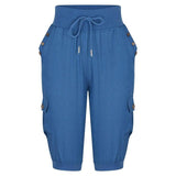 Mulheres verão calças compridas soltas cintura alta franzida perna larga cáqui/XLLOVEMI