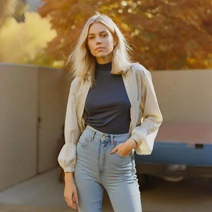 Jeans stretch branco com borlas e elástico na cintura alta para mulheresLOVEMI