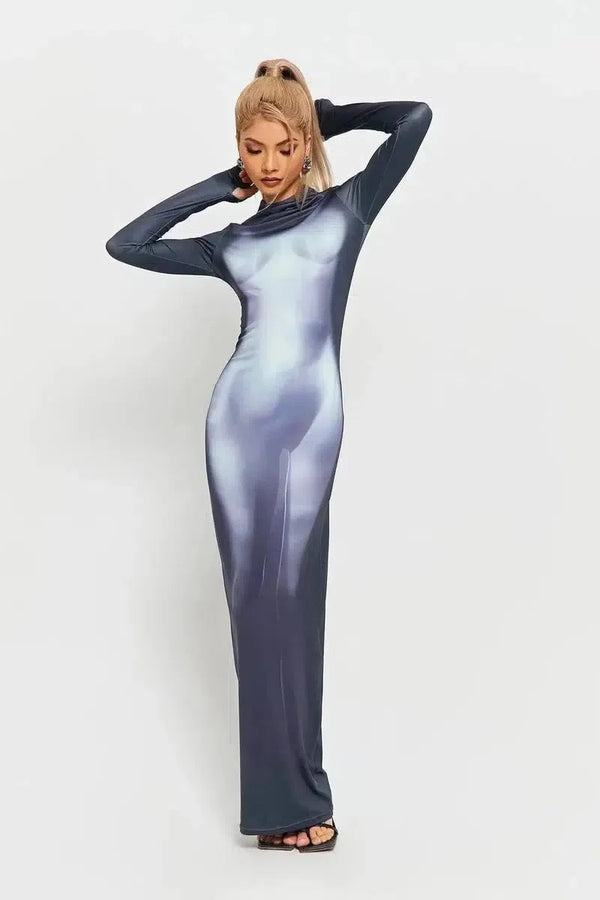 Vestido de festa com mangas superlongas com impressão corporal 3D