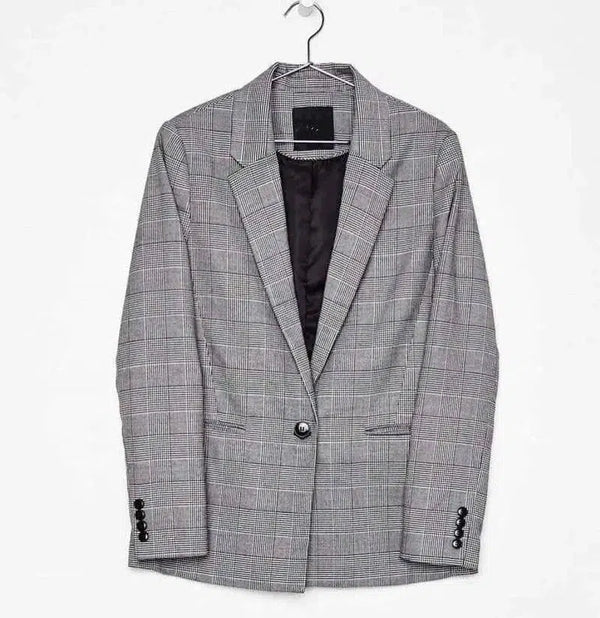 - Detalhe do design: Padrão xadrez elegante com fechamento por botões