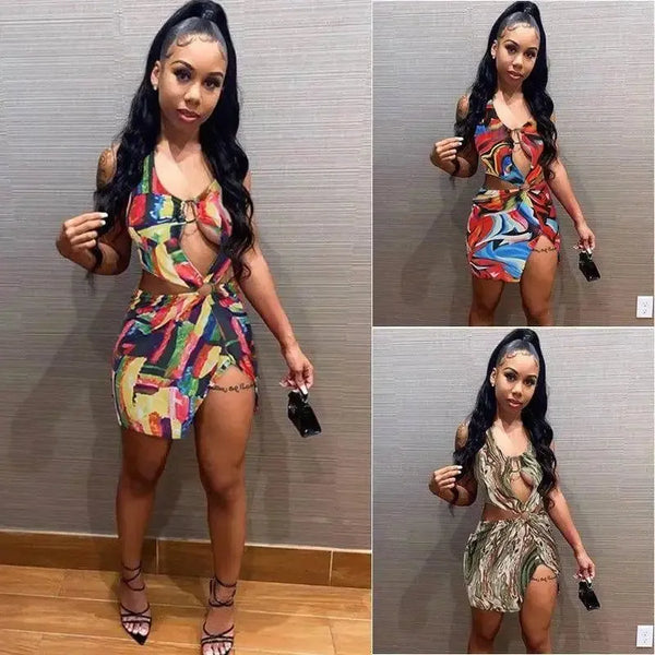 Slip Print Split Bikini For Women In Knitted Swimsuit