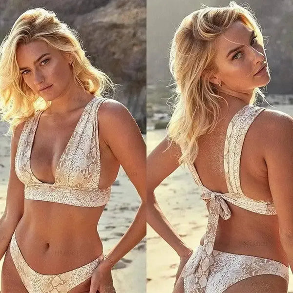 - Design: biquíni com estampa de cobra, com um atraente padrão reptiliano