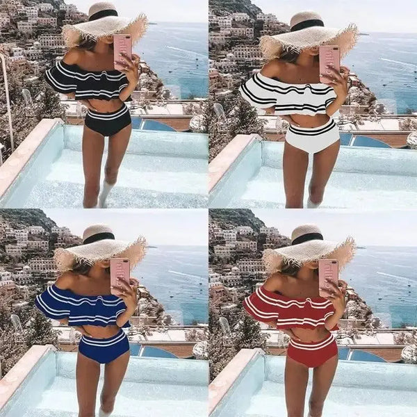 Descrição do produto: Biquíni de cintura alta com listras chamativas