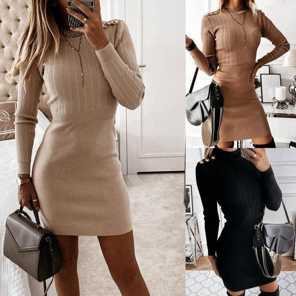 Saia curta de tricô com quadris Suéter de tricô de manga longa para mulheres