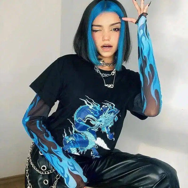 Camiseta com gráfico de dragão com manga flamejante