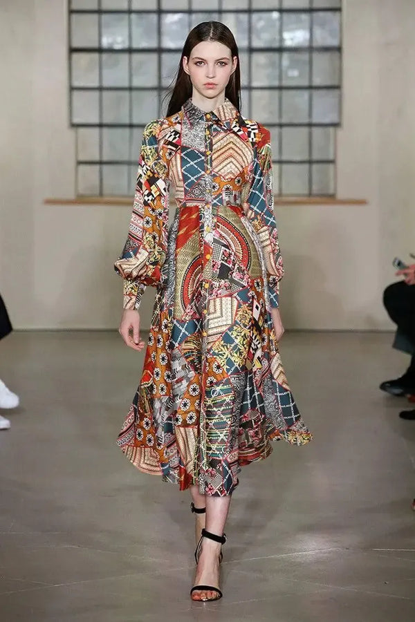 MoaaYina Vestido com estampa vintage