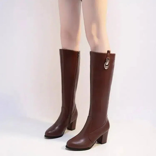 Outono e inverno Botas de cano alto com salto grosso e pontiagudo
