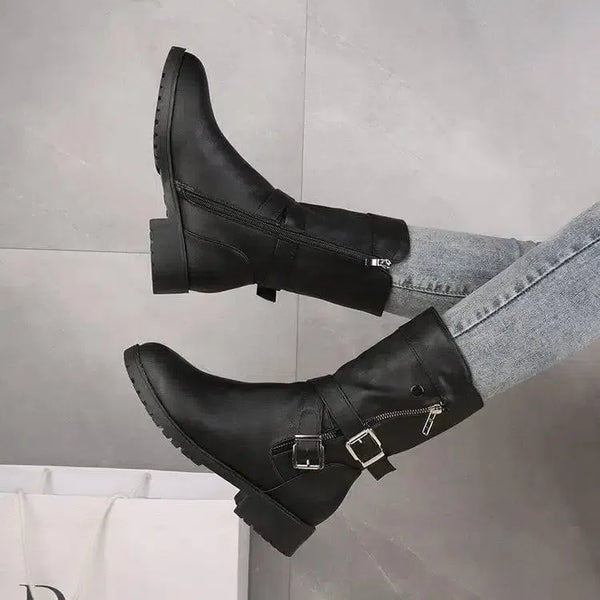 - Design: Botas Martin da moda com um elegante acento de fivela de cinto