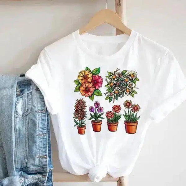 Camiseta com estampa de vasos de plantas florais para uso casual