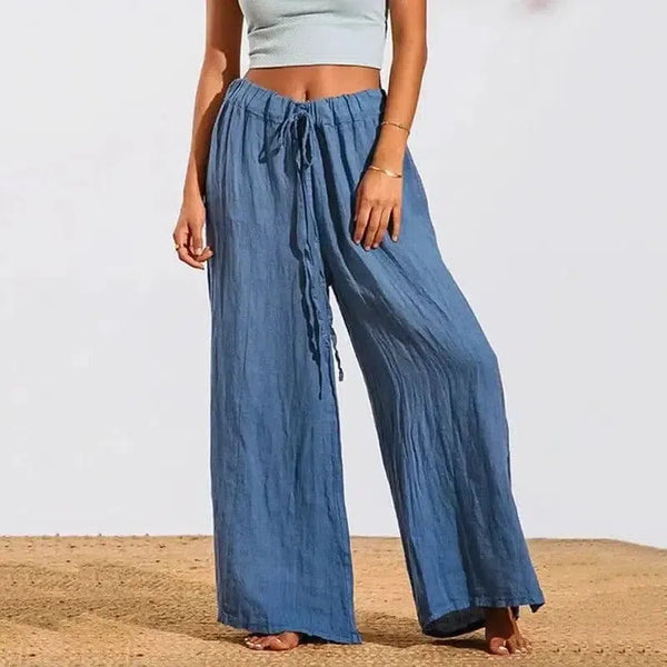 Calça casual feminina de algodão com cordão macio e solto
