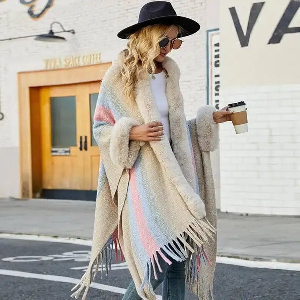 Descrição do produto: Capa com capuz feminina listrada de outono e inverno