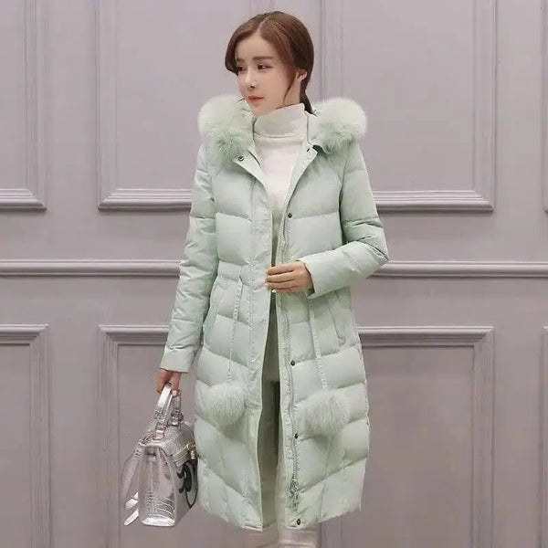 Casaco coreano de algodão acolchoado para mulheres acima do joelho