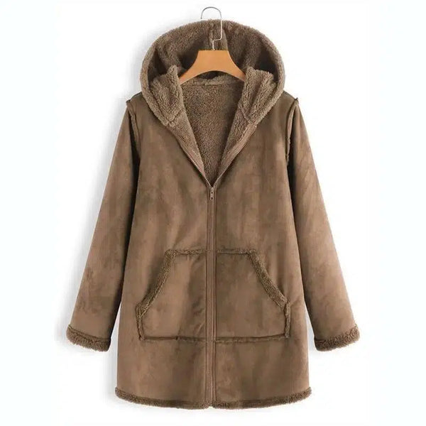 Casaco com capuz de pelúcia quente de bolso para o inverno - Descrição do produto:
