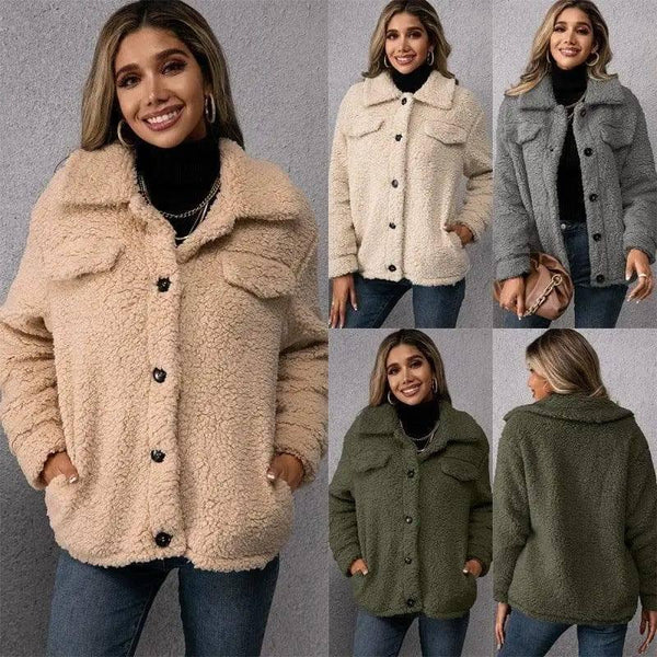 Casaco de pelúcia com lapela casual solto Casaco de lã de carneiro