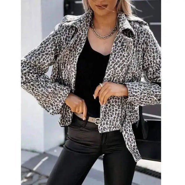 Casaco curto de manga comprida com estampa de leopardo
