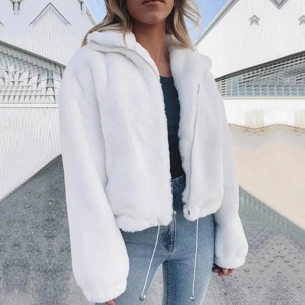 Casaco de pele de coelho de imitação de cor sólida para mulheres