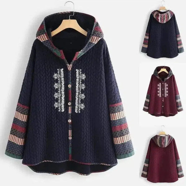 - Estilo do decote ou dos ombros: Com capuz e forro interno estampado