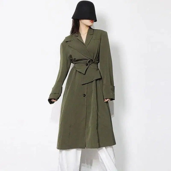 Descrição do produto: Casaco longo com lapela e trespassado de painel irregular