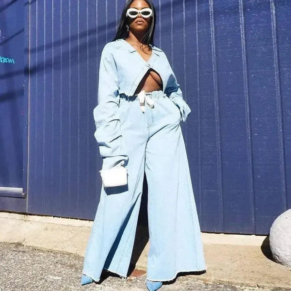 Conjunto casual solto de duas peças em jeans Roupas femininas