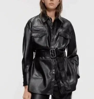 - Tipo de roupa: Top de couro PU médio e longo