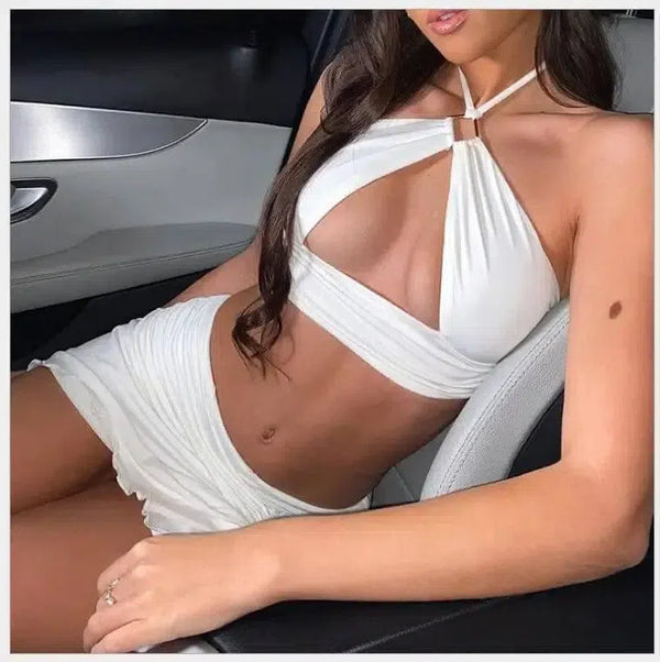 Crop Top Mini-saias Conjuntos de duas peças para mulheres Halter Top