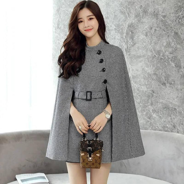 Descrição do produto: Design Wool Cape Lace-up Collar Coat
