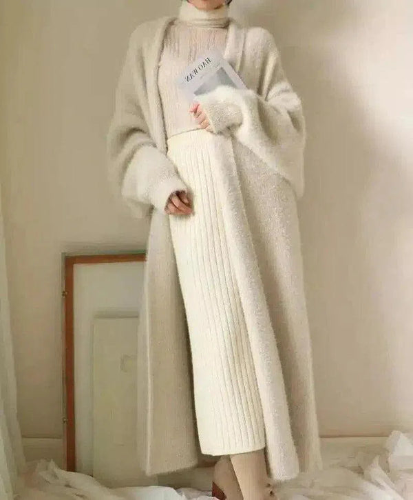 - Corte chique com pala longa: Experimente a silhueta lisonjeira de um moderno cardigã com pala longa que se estende graciosamente sobre sua figura, aprimorando seu quociente de estilo sem esforço.