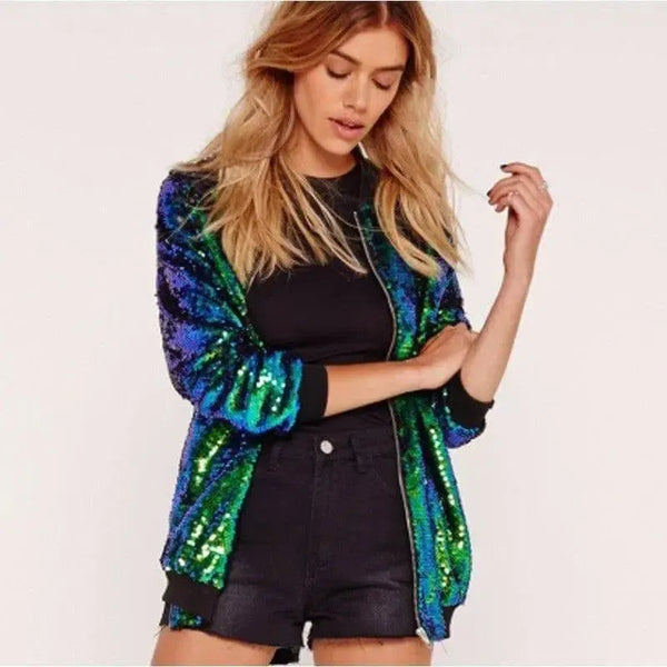 Jaqueta feminina casual de outono com lantejoulas