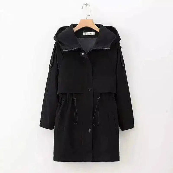 Jaqueta casual feminina com capuz e cintura com cordão