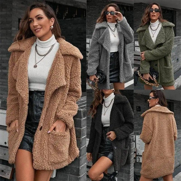 Jaqueta de lã com bolha de um peito só Jaqueta de lã de cordeiro com lapela solta