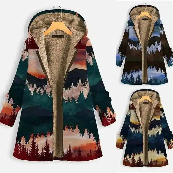 - Detalhes do design: Impressão de paisagem de floresta e montanha