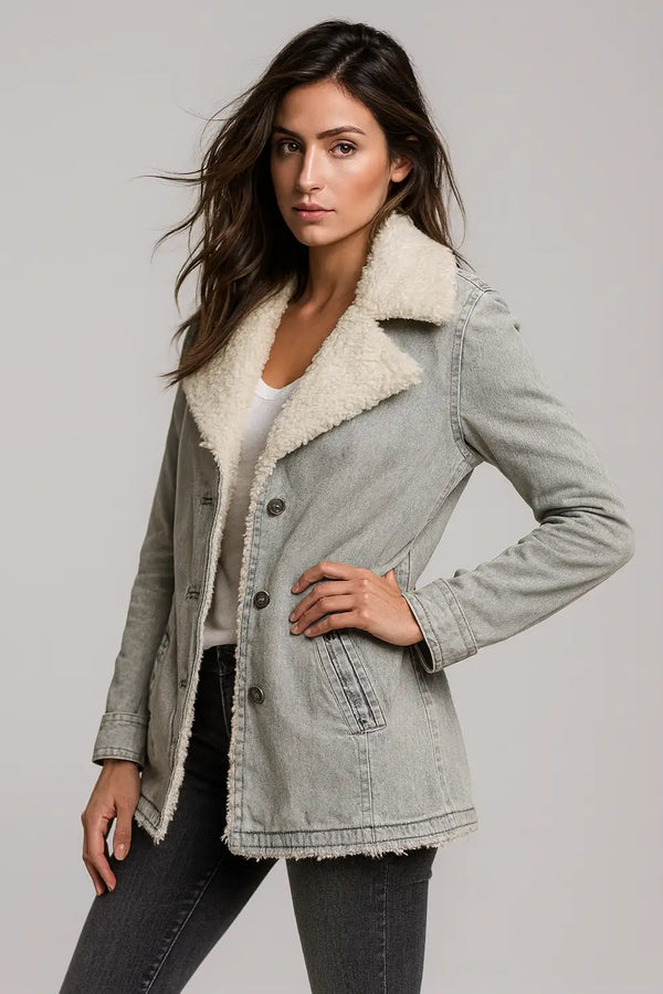 - Tipo de peça: Jaqueta jeans com forro de sherpa