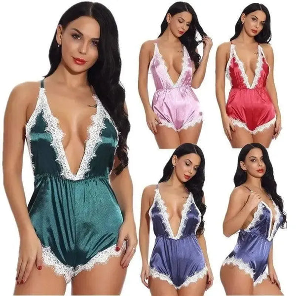 Lingerie Satin Lace Pajamas Back Cross Stretch