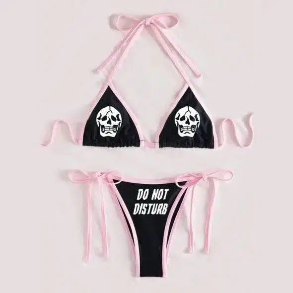 Descrição do produto: Biquíni com estampa de caveira 3D e céu estrelado para senhoras com biquíni de banho dividido