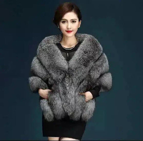 Outono e inverno, novo casaco de pele de raposa imitando pele de raposa prateada