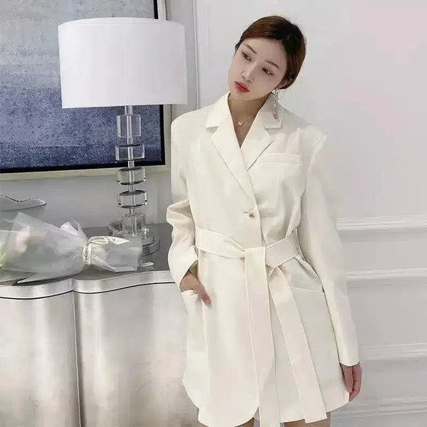 Jaqueta feminina com cinto e vestido tipo trincheira