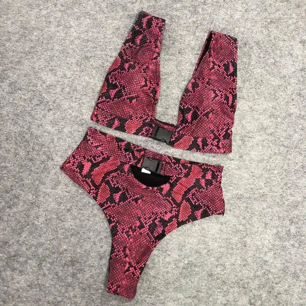 Biquíni europeu e americano Swimsuit Snake Print High Waist