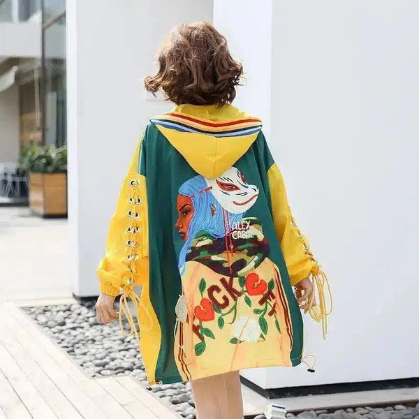 Jaqueta com capuz com estampa gráfica e mangas com cordões