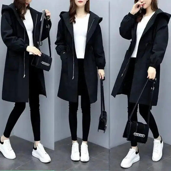 Casaco longo com capuz e fechamento com zíper para mulheres
