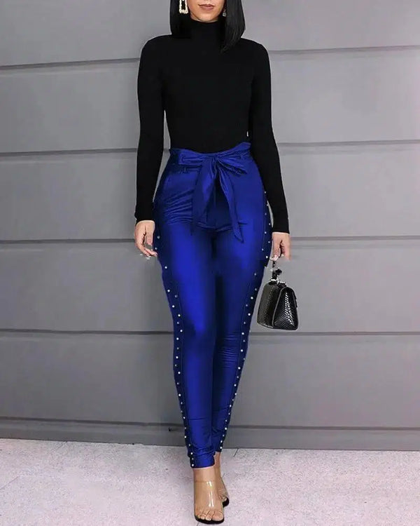 - Tipo de peça: Conjunto de blusa de manga comprida e calça de cintura alta