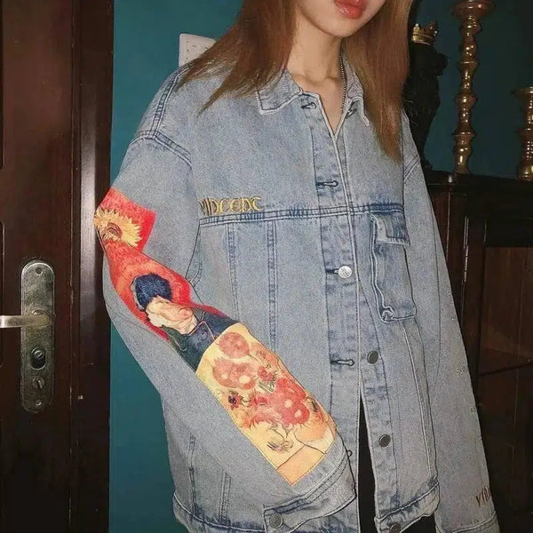 Jaqueta jeans hip hop camisa solta da marca tide