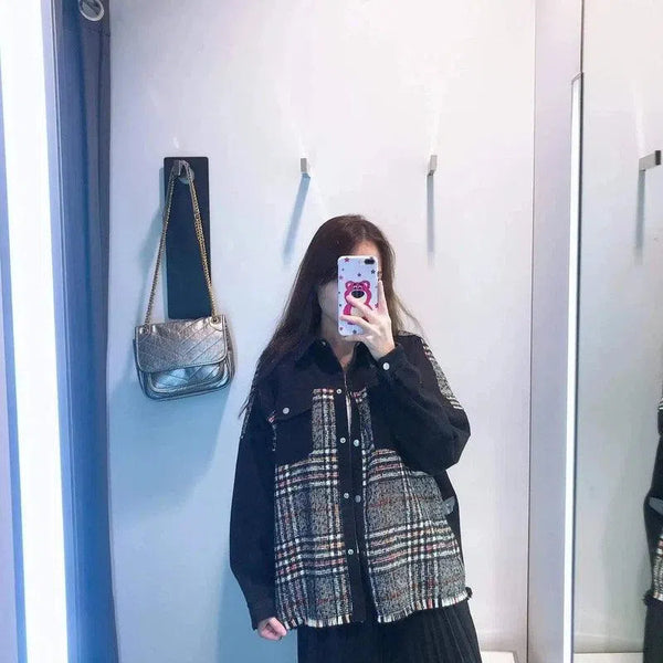 Textura e material luxuosos: Confeccionada com uma mistura de alta qualidade, essa jaqueta oferece um toque confortável e macio. A combinação de tecido preto sólido com painéis tipo tweed acrescenta um toque de sofisticação e textura ao design.