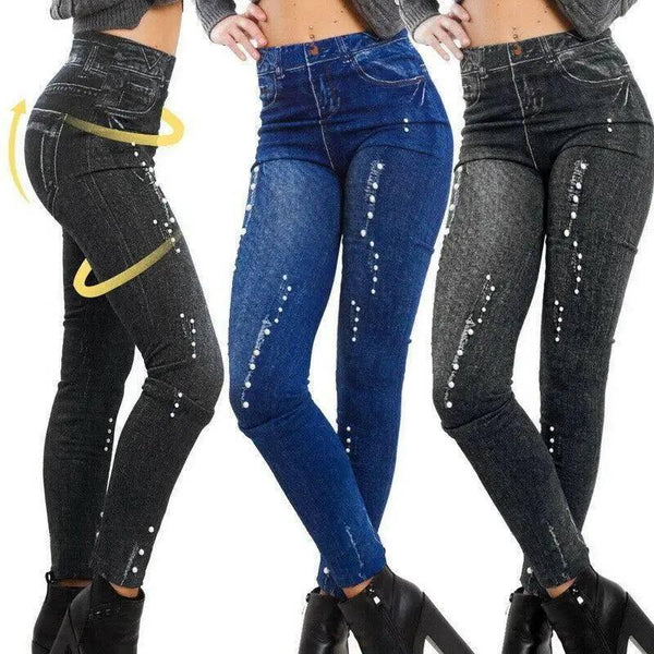 Leggings com estampa de jeans