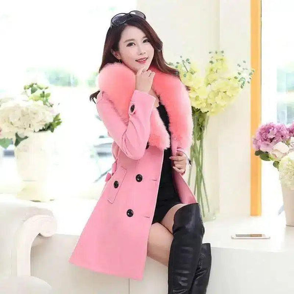 - Decote: Gola de pele de pelúcia