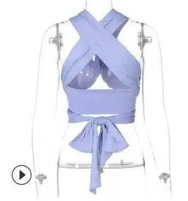 - Estilo do decote ou dos ombros: Decote haltere cruzado