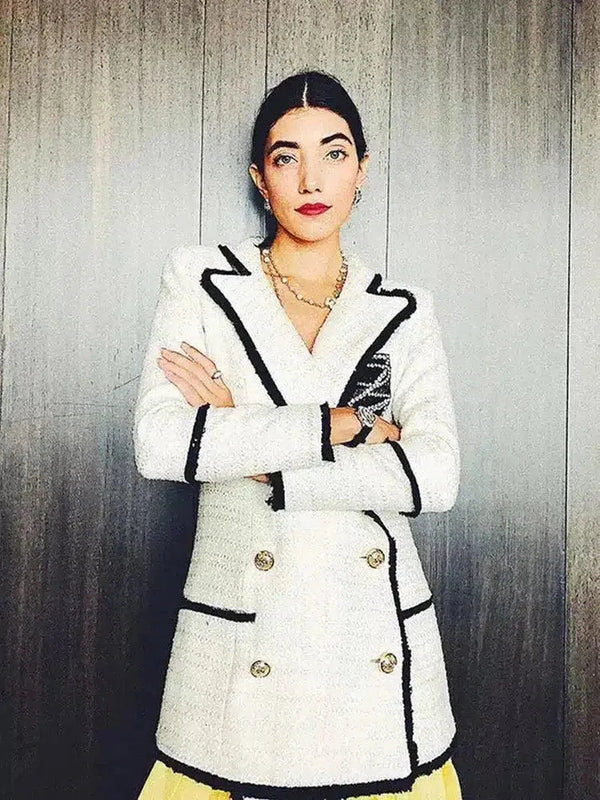 Jaqueta feminina de tweed com abotoamento duplo