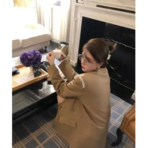 Jaqueta de terno de diamante brilhante solta e combinando com a moda