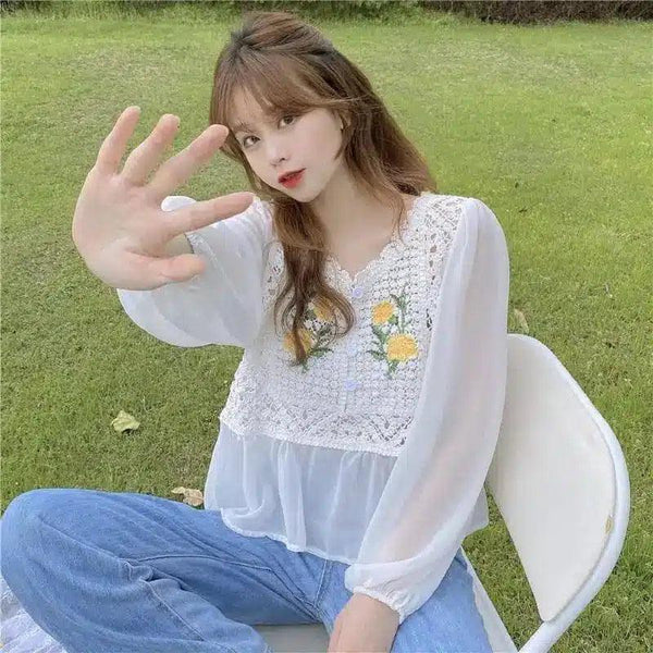 Blusa casual feminina de renda floral