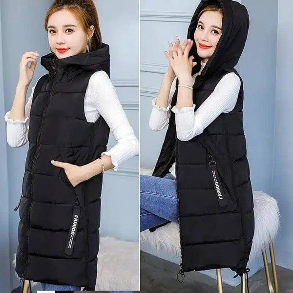 Estilo coreano: colete solto de comprimento médio acima do joelho