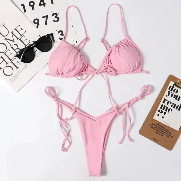 Fato de banho feminino Fio dental com cordão dividido em cores sólidas